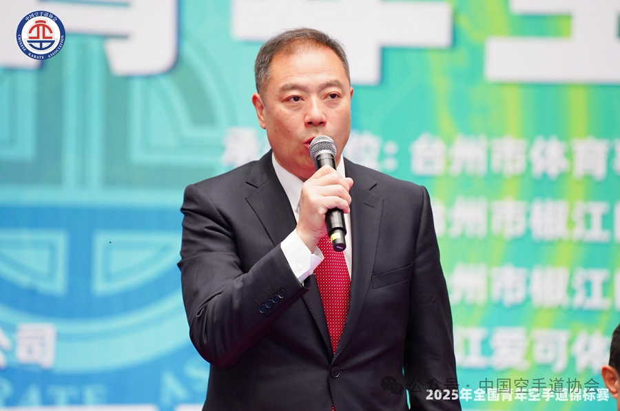 椒江区人民政府副区长蒋吉清致辞:一直以来,椒江的体育事业蓬勃发展,群众体育基础扎实,各类体育赛事精彩纷呈,全民健身氛围日益浓厚。此次全国青年空手道锦标赛的举办,是中国空手道协会推动青年运动技术水平提升、培育国家高水平体育后备人才的重要举措。台州将以热情好客的姿态,为所有远道而来的朋友们提供贴心周到的服务,让大家在比赛之余,充分领略台州的自然风光、人文历史和美食文化。希望各位参赛选手在赛场上发扬顽强拼搏、勇于进取的体育精神,赛出风格、赛出水平、赛出友谊,以精湛的技艺和昂扬的斗志,展现新时代青年运动员的风采。